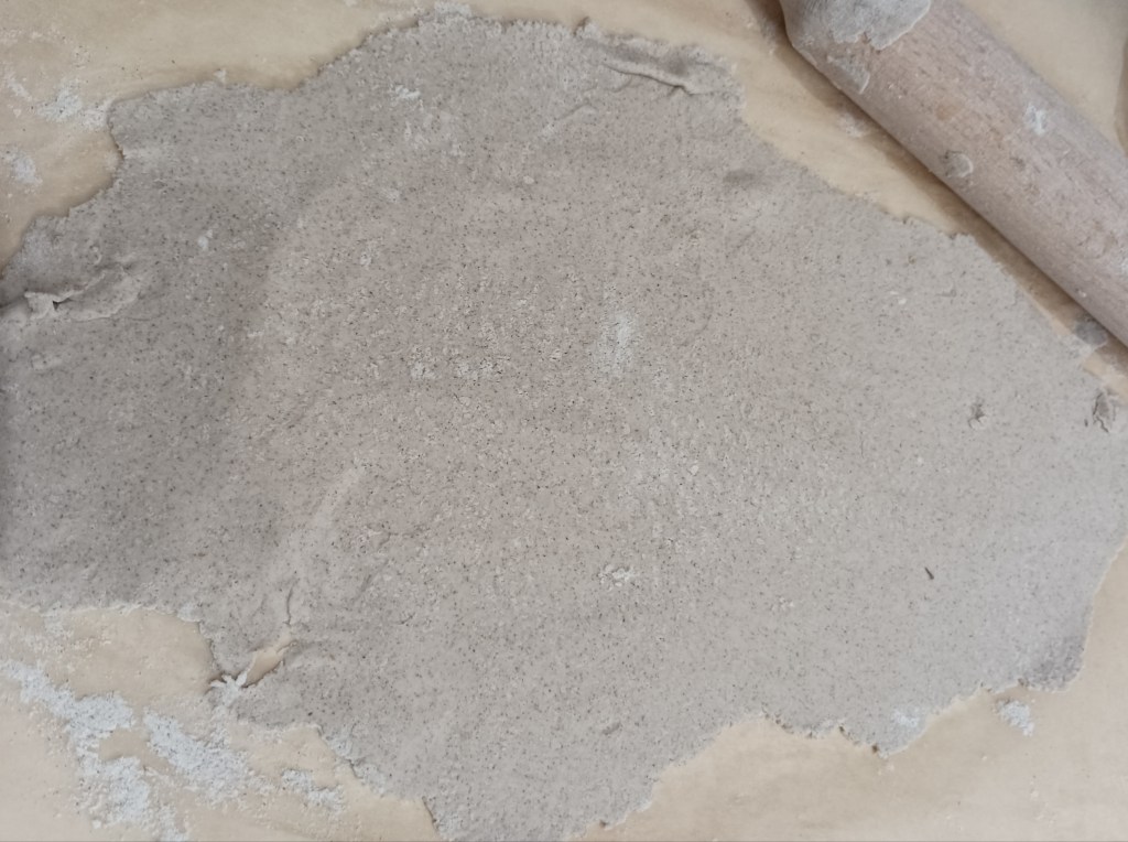 Izmiješati mokre sa suhim sastojcima i zamijesiti tijesto. Po potrebi dodati vode ako je gusto i heljdinog brašna ako je rijetko. Smjesa mora biti tvrđa da se može izvaljati valjkom. Smjesu podijeliti u 5 do 6 dijelova (oblikovati kugle). Svaki dio se izvalja koliko se tanje može (na masnom papiru koji se pospe s heljdinim brašnom) te se puni sa slanim ili slatkim punjenjem. U jednoj pripremi može se napraviti nešto od navedenih varijanti (za puni pleh od pećnice).