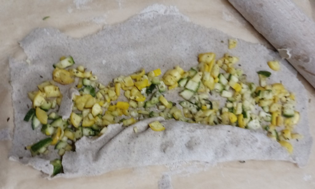 Slano punjenje 2: Tikvice izrezane na sitne kockice posute s mješavinom mediteranskih začina, soli malo ulja (tko voli može staviti narendani luk).