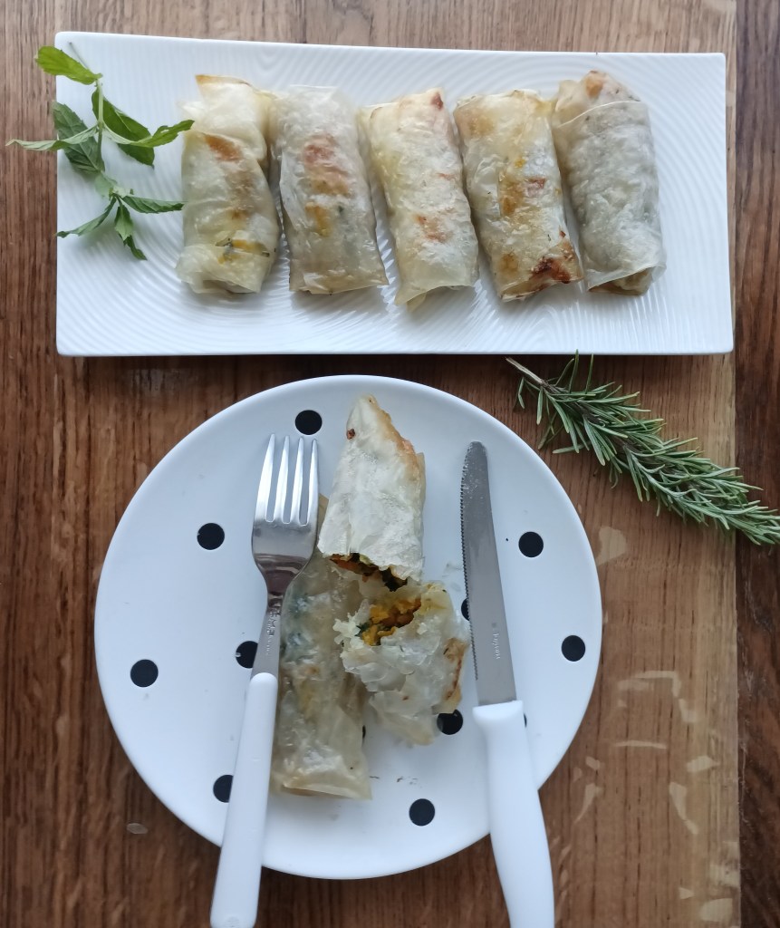 U priloženom receptu punjenje rolica je s tikvicama izrezanim na sitne kockice (sol i mediteranski začini)