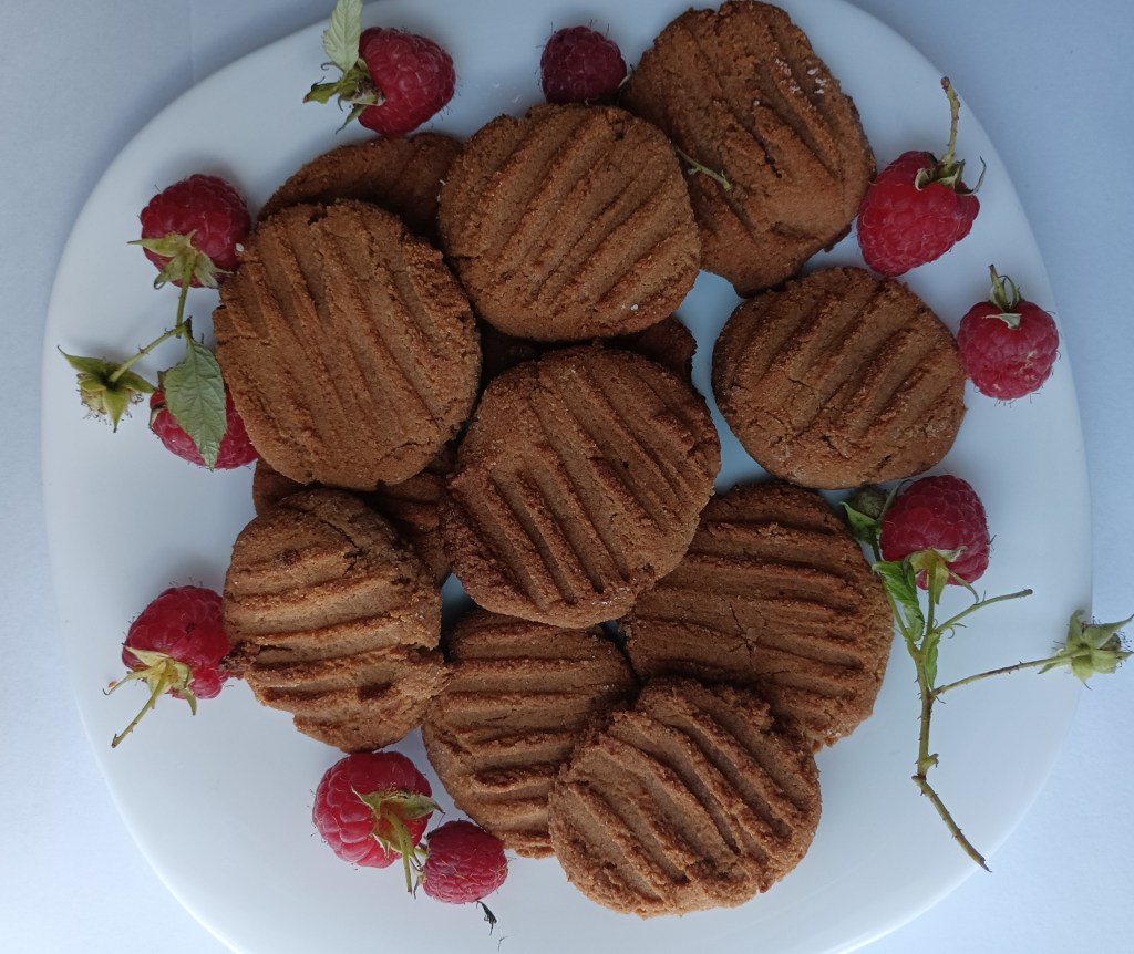 U blenderu smiksati mokre sastojke. Prebaciti u posudu i dodavati prašak za pecivo, pola šalice rižinog griza i rižino brašno koliko treba dok smjesa ne bude ljepljiva kako bi se mogle oblikovati kuglice. Kuglice slagati u pleh obložen papirom za pečenje (lagano premazan uljem). S vilicom pritisnuti svaku kuglicu kako bi se oblikovao keks. Peći na 200 stupnjeva dvadesetak minuta dok ne porumene.