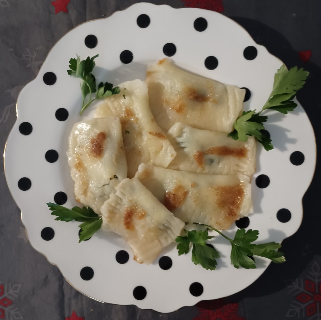 Od navedenih se sastojaka zamijesiti tijesto. Po potrebi dodati još vode ili brašna kako ne bi bilo ljepljivo. Podijeliti na manje kugle i razvaljati koliko se može. Režu se kvadrati i u njih se stavlja punjenje. S vilicom umakanom u vodu stisnuti krajeve jastučića da smjesa ne izađe van. Jastučiće staviti u proključalu posoljenu vodu. Kuha se dok se ne dignu na površinu. Jastučići se pospu s poprženim bezglutenskim mrvicama.