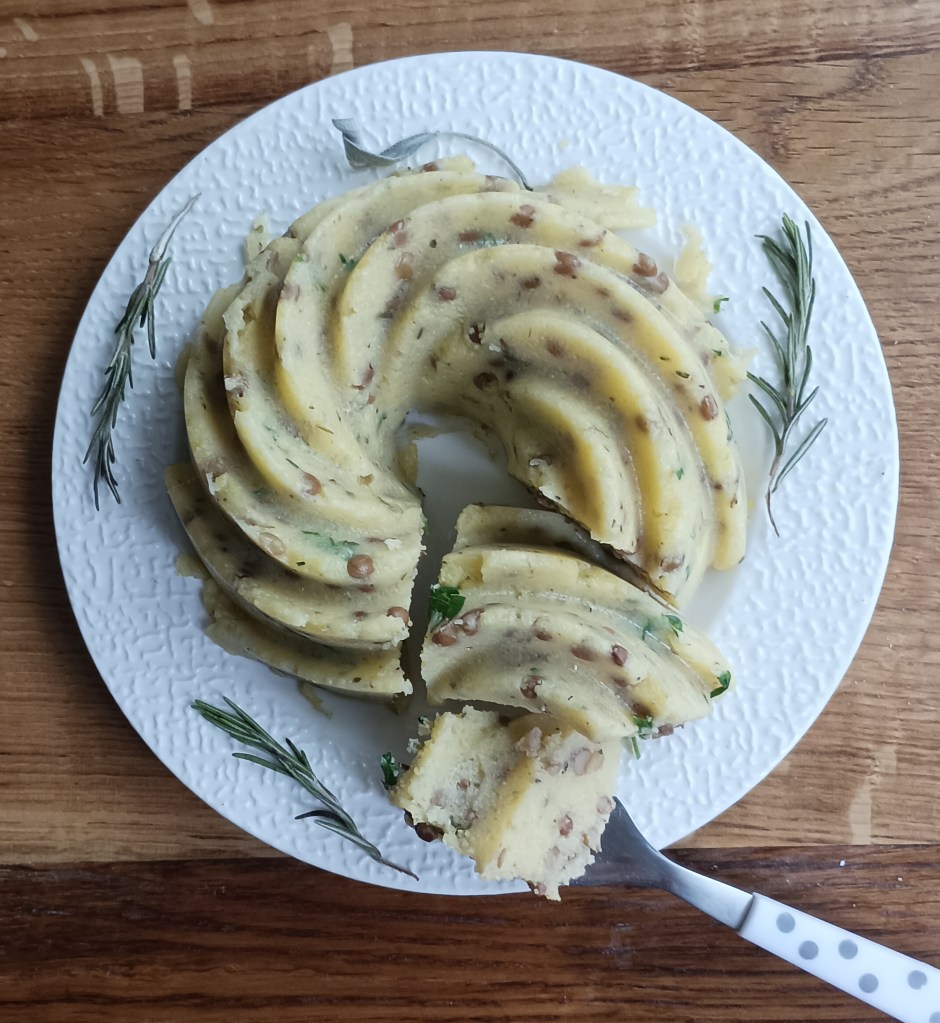 Leću kuhati u tri šalice posoljene vode. Procijediti i začiniti mediteranskim začinima (ili uzeti skuhanu leću iz konzerve). Kuhati palentu u slanoj vodi (oko pola litre), a zakuhati kako piše na vrećici. Umiješati leću u palentu i začiniti s maslinovim uljem i peršinovim listom. Može se za seviranje koristiti različite modle i jesti kao prilog mesu (pa i ribi) ili uz salatu kao poseban obrok.