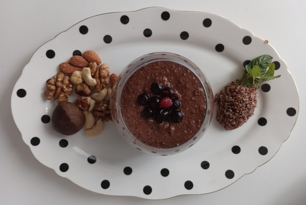 Kvinoja se ispere pod mlazom hladne vode i kuha 15-ak minuta u mješavini mlijeka i vode. Nakon toga se ostavi poklopljeno da stoji dok se ne upije većina tekućine. Banane, kakao, pasta od datulja, odabrano bobičasto voće i/ili orašasti plodovi se smiksaju u blenderu i dodaju kvinoji. Dobro se izmiješa da se smjesa spoji. Stavi se u posude i jede za doručak ili ohladi ako se jede kao desert.