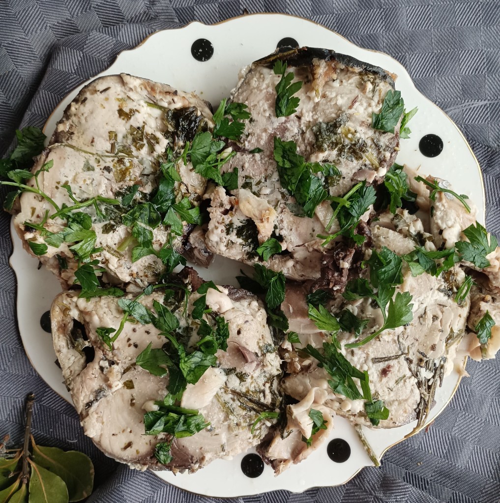Riba: Odreske palamide staviti u marinadu od maslinovog ulja, mješavine mediteranskih začina, ružmarina, peršinovog lista i limuna (par sati ili preko noći, a odresci mogu stajati u marinadi i više dana). Ribu staviti u pleh prekriven papirom za pečenje i peći u pećnici 30 minuta na 200 stupnjeva.
