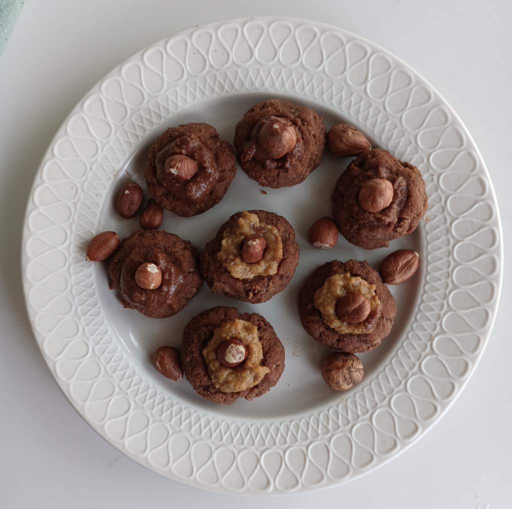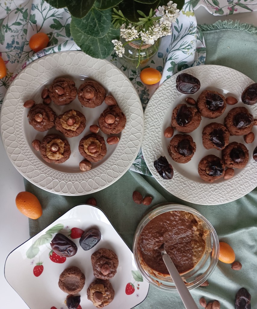 Prvo izmiješati namočene chia sjemenke sa sladilom, kokosovim uljem i mlijekom. Polako dodavati brašna i zamijesiti tijesto da se mogu oblikovati kuglice (po potrebi dodati još brašna ili mlijeka). Kuglice slagati u lim prekriven papirom za pečenje, a onda ih pritisnuti kako bi se dobili medaljoni s udubljenjem koje se može puniti. Peći na 180 stupnjeva 20-ak minuta. Nakon pečenja i kada se ohlade keksići se pune namazom, pekmezom i sl. a na vrh se stavi pola datulje ili lješnjak.
