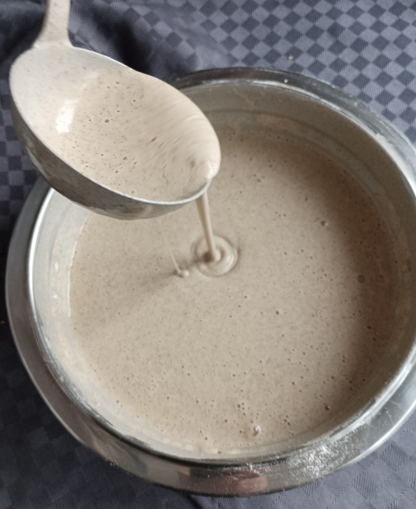 Umutiti jaja, dodati brašno i polako dodavati mlijeko dok smjesa bude ni gusta, ni rijetka. Ostaviti da stoji pola sata. Ugrijati tavu i s kistom premazati površinu. Smjesu dobro promiješati. Ona se s vremenom zgusne pa treba dodati još malo mlijeka. Palačinke se mogu peći i bez premazivanja ako je tava namijenjena samo pečenju palačinki. Važno je da se palačinke uopće ne lijepe za tavu bilo da je premazana uljem ili ne..