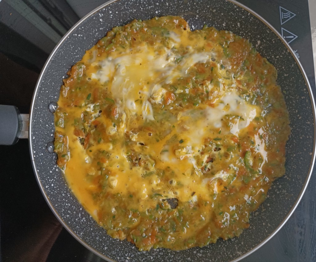Slika 3. Izmućeno jednojaje preliveno preko povrća