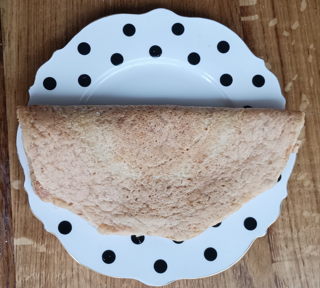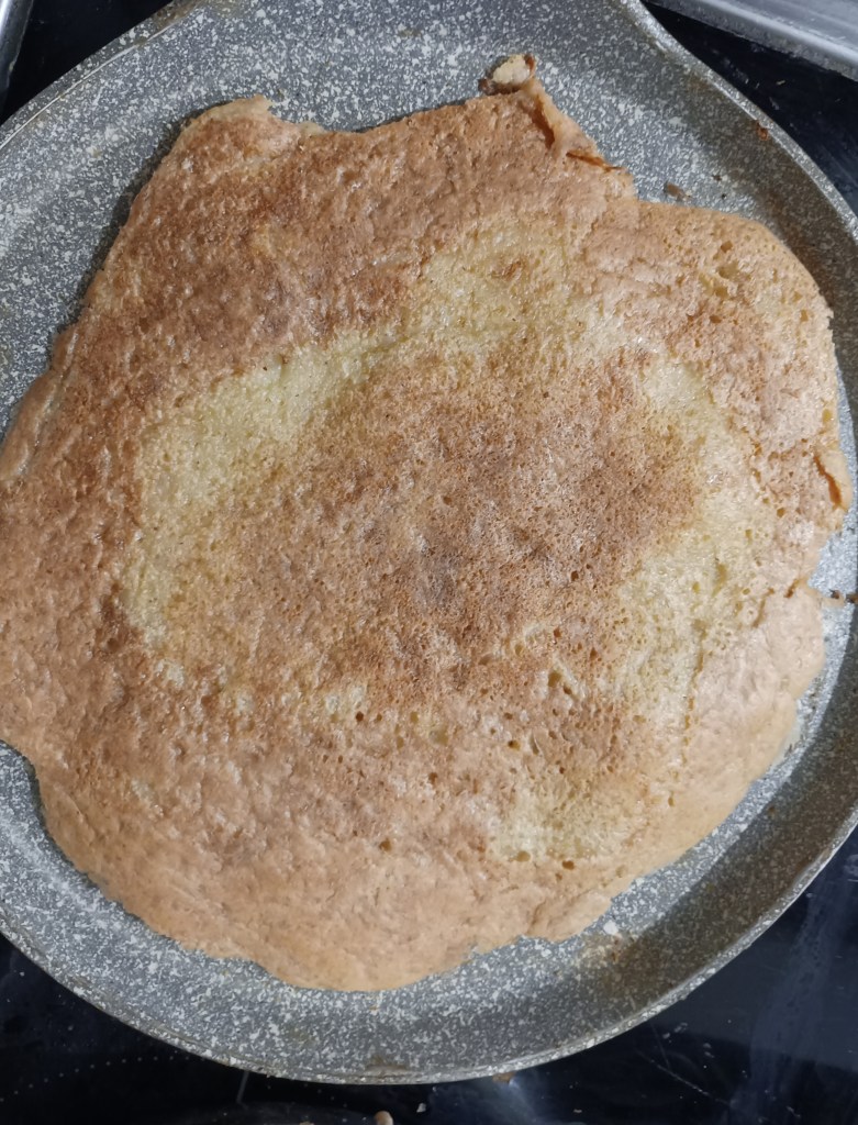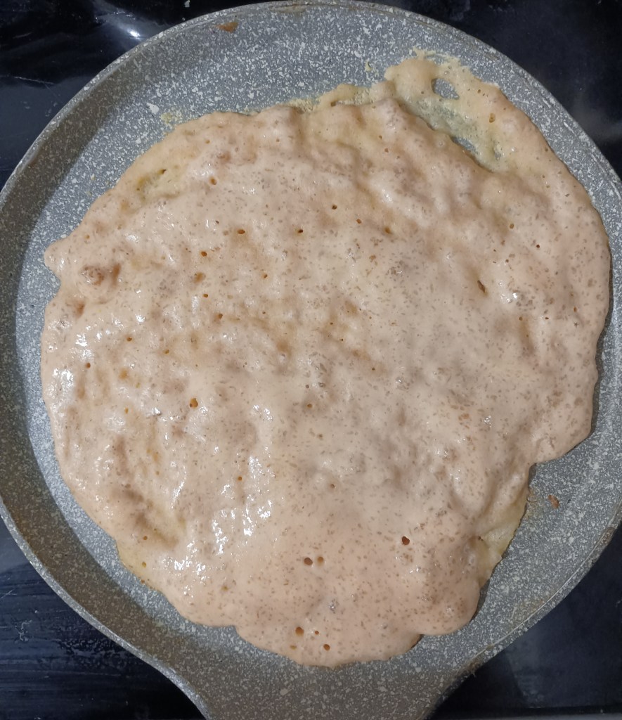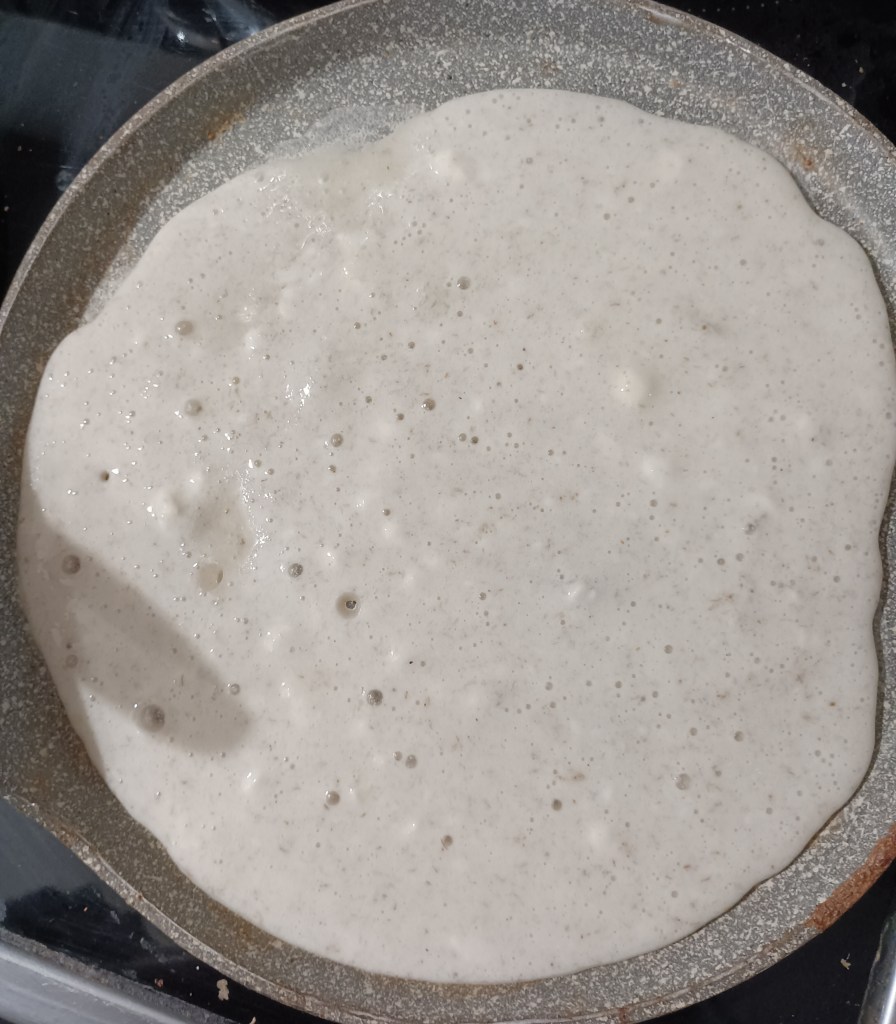 Leću namoćiti barem tri sata. Dobro isprati i staviti u duboku posudu s pola vode i miksati štapnim mikserom. Smiksanoj smjesi polako dodati vode kako bi bila ni gusta ni rijetka. Dodati netom namočene s vodom psyllium ljuskice, pa brašno i preostalu vodu, sol i ulje. Ostaviti da odstoji. Smjesa će biti dosta gusta. Vadi se s grabljačom i s njom raširi na vrućoj suhoj tavi. Smanji se vatra na 3 do 4 i peče par minurta s jedne i par minuta s druge strane.