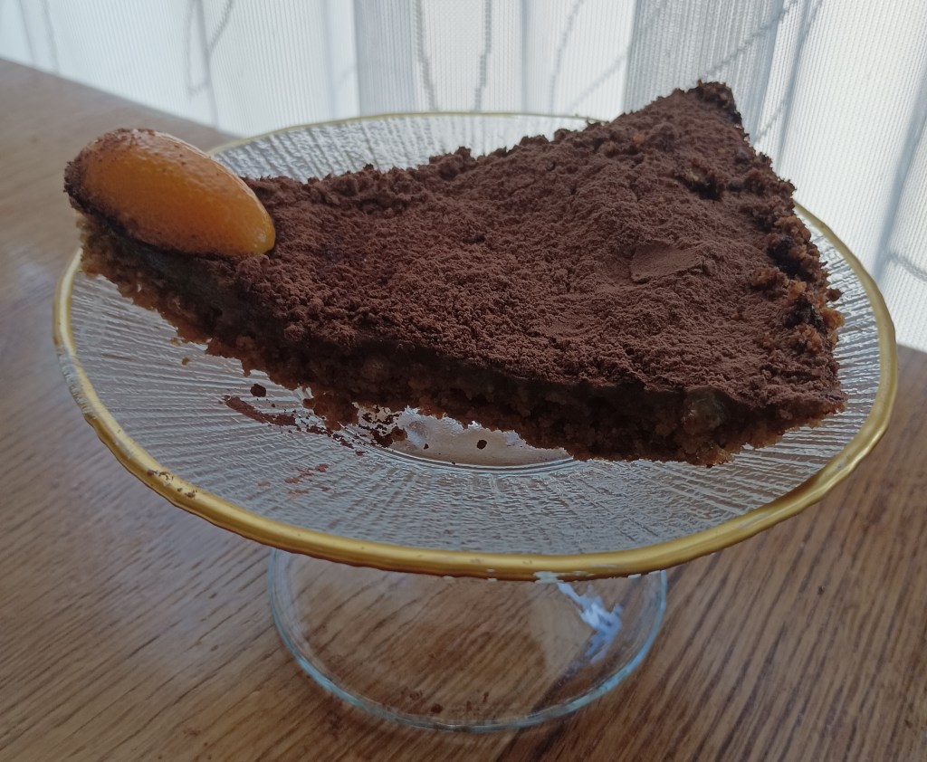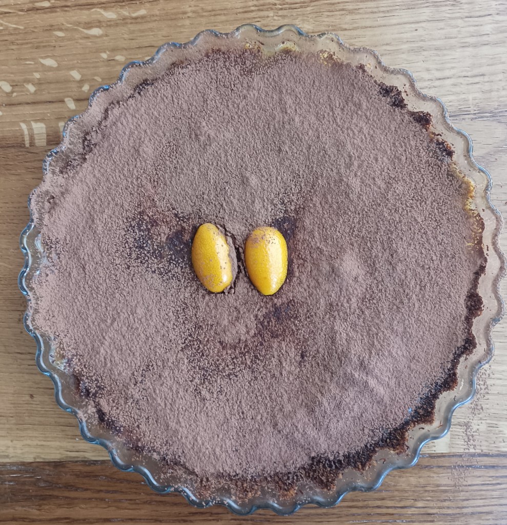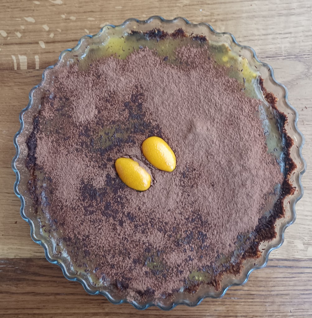 Keks samljeti i u njega ubaciti koricu naranče i maslac sobne temperature. Izgnječiti keks i maslac uz dodatak soka naranče toliko da se dobije kompaktno tijesto. U kalup za tart, premazan maslasem, staviti smjesu keksa i rukama ravnomjerno utisnuti. Tada kalup staviti u zagrijanu pećnicu i peći 20 do 30 minuta na 190 stupnjeva. Kada je ispečeno pripremi se sok od naranče u koji se ukuha pudinge i ta smjesa ravnomjerno se rsporedi po ispečenoj kori. Kada se ohladi pospe se s kakaom ili se može preliti ćokoladom.