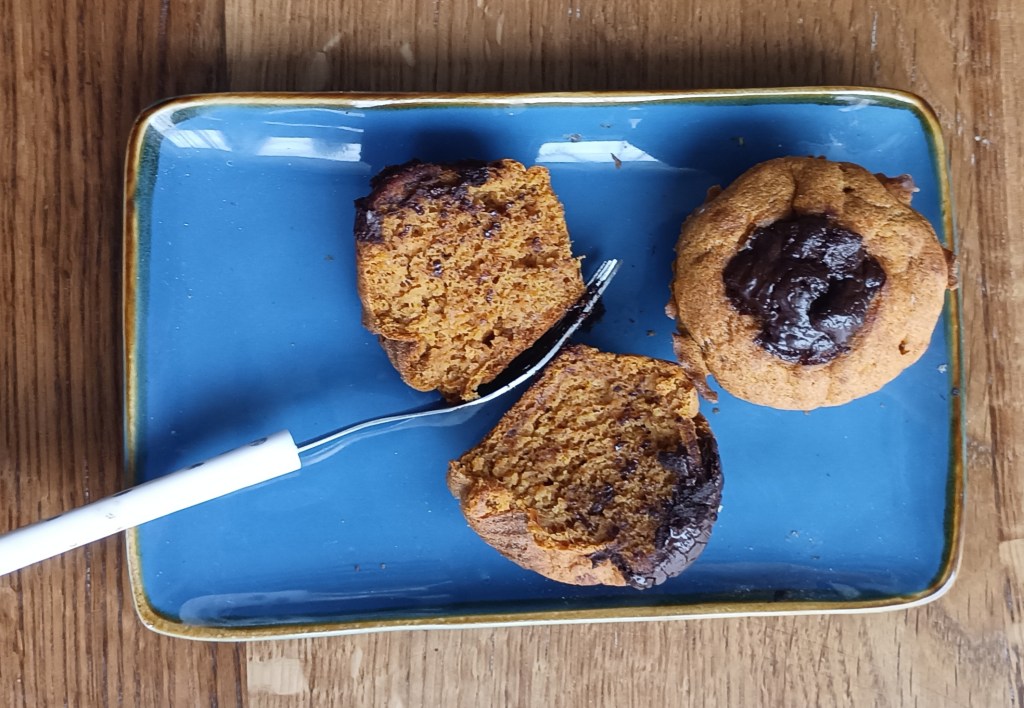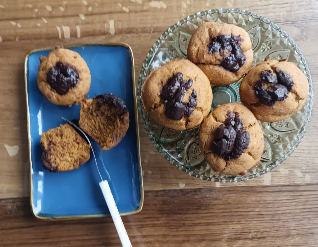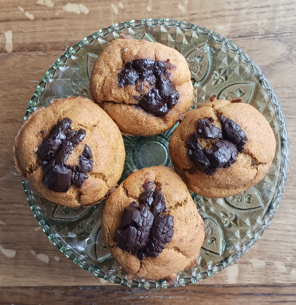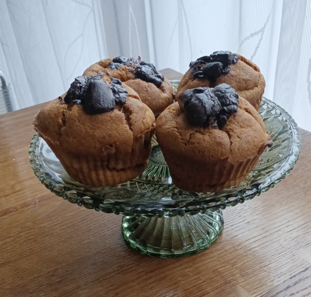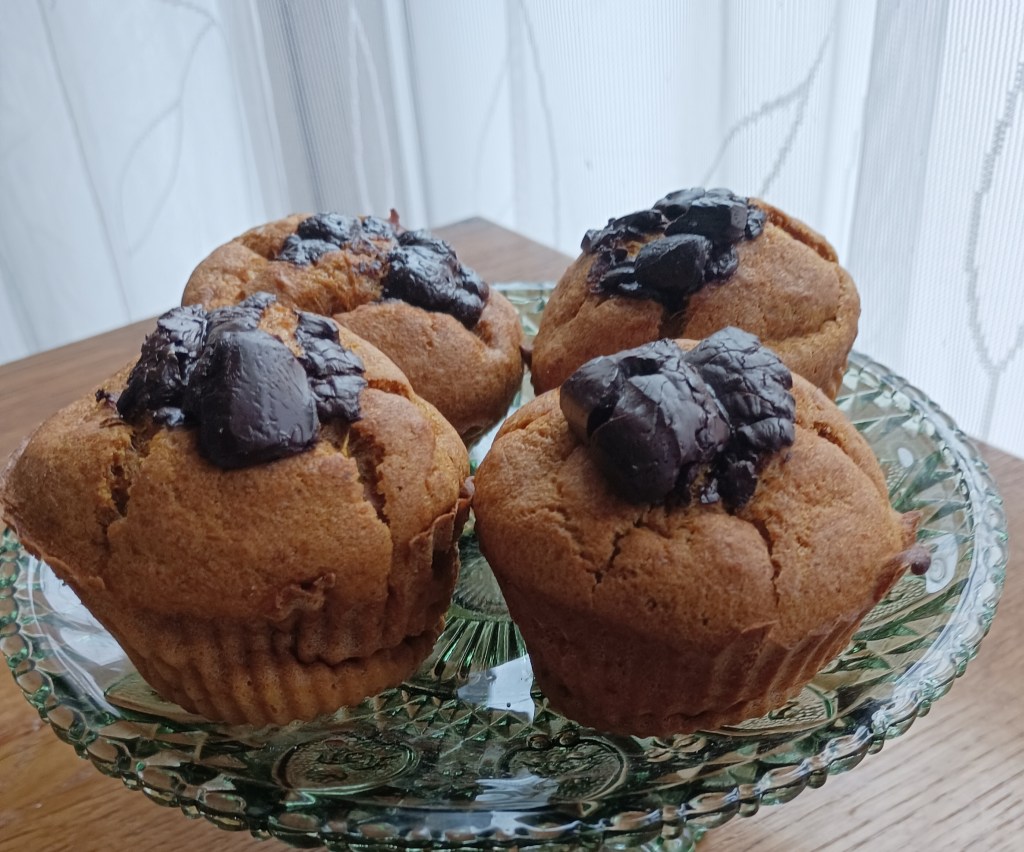 Izmiješati sve sastojke. Istresti u kalup za muffine (najbolje silikonske). U svaki muffin ubosti komadić tamne čokolade. Staviti peći u zagrijanu pećnicu na 190 d0 200 stupnjeva i peći 30 do 40 minuta (ovisno o pećnici).