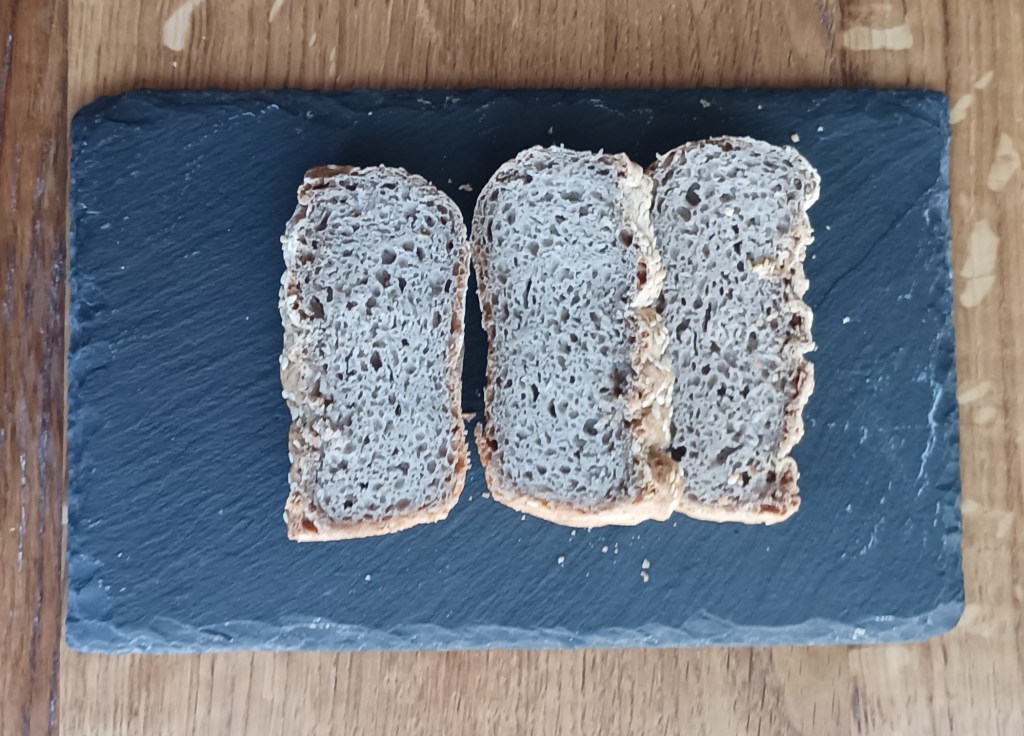 Izmješati sastojke. Dodati aktiviran kvasac i mijesiti hruh tako da bude ljepljiv (radim u mješalici za kruh tako da bude dosta žitak). Smjesu istresti (jer je ljepljiva) u kalup za kruh obložen papirom za pečenje. Kruh prekriti s krpom i ostavi da se digne (barem sat vremena). Peče se na 190 do 200 stupnjeva 50 do 60 minuta. Kada je gotov omota se kuhinjskom krpom i ostavi da se hladi.