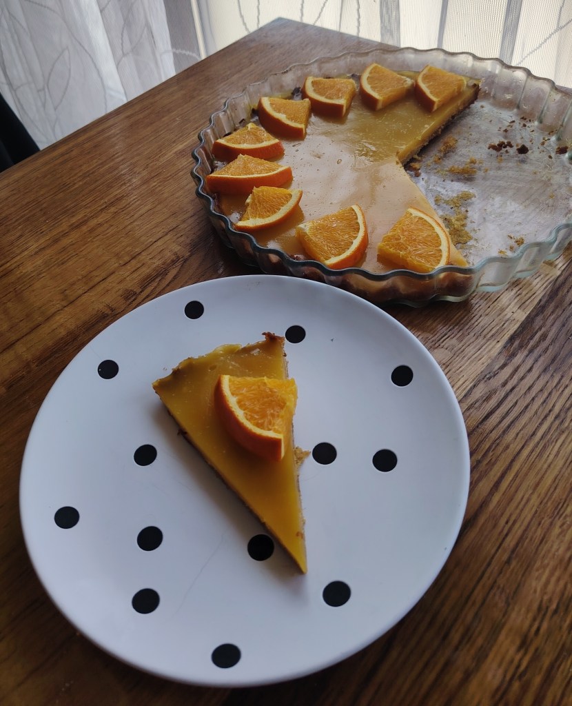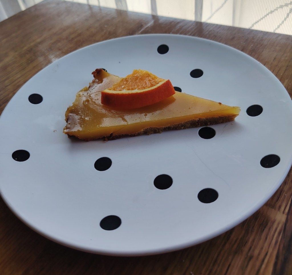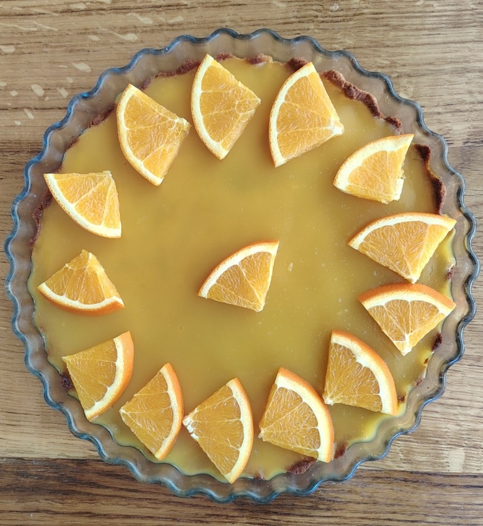 Zakuhati sok od naranče, dodati puding i kuhati po uputama s vrećice. Stavi se mnanje od pola litre tekućine kako bi fil bio čvršći. Dok je još vruće staviti na podlogu i ostaviti da se ohladi. Za ukrašavanje staviti komadiće naranče.