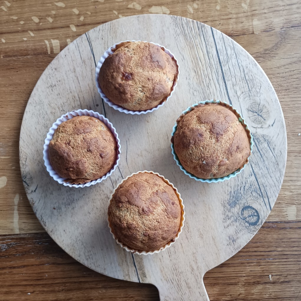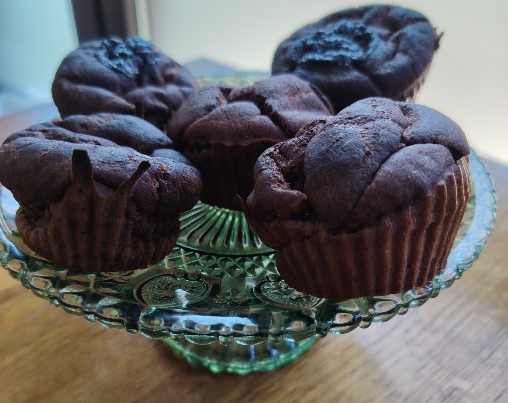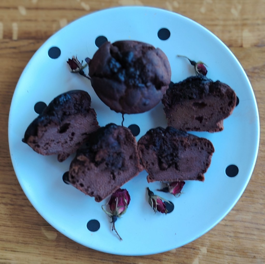 Može se birati dvije verzje ovih muffina. Svijetli muffini su bez, a tamni muffini (vidjeti na na slikama) su s kakakom i s kockom tamne čokolade umetnutom u muffin prije pečenja (ova varijanta je s kompaktnijim tijestom).