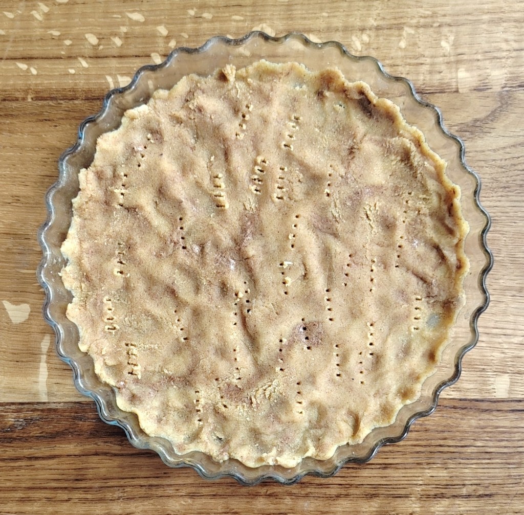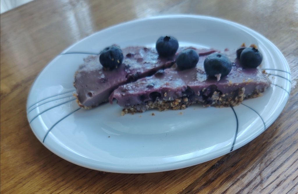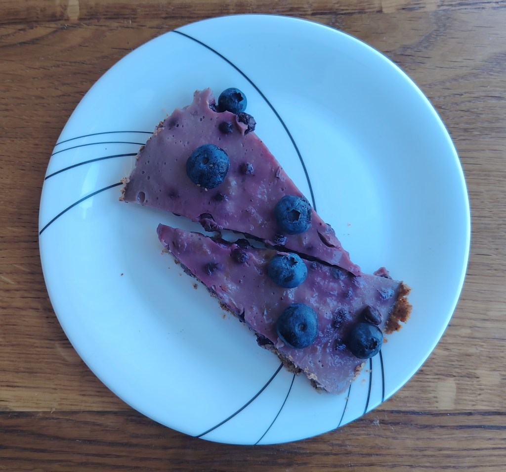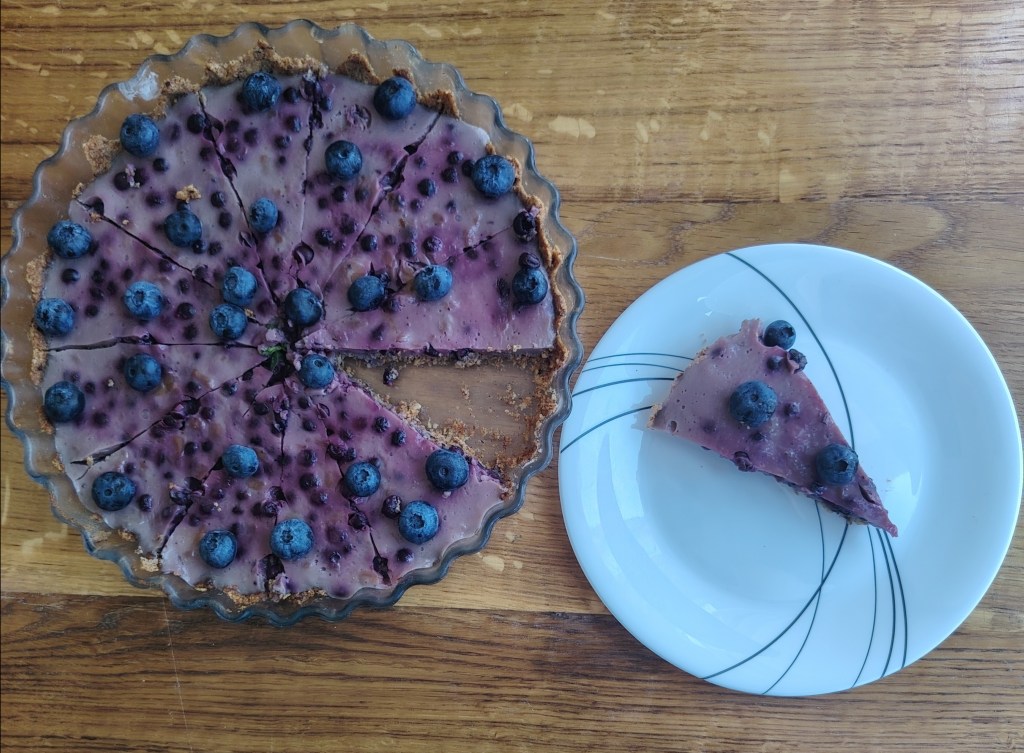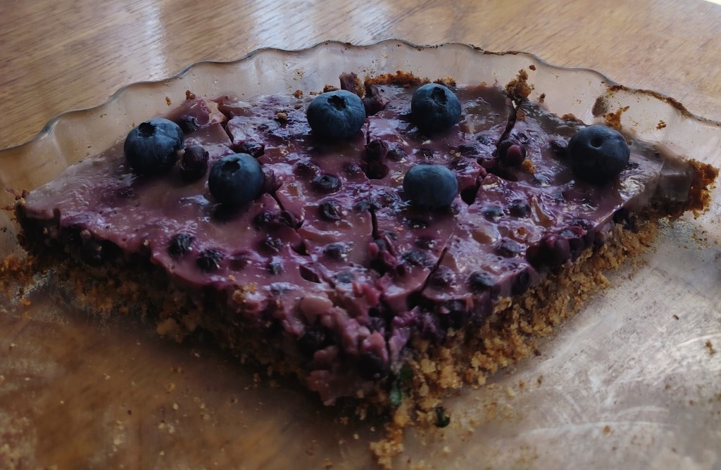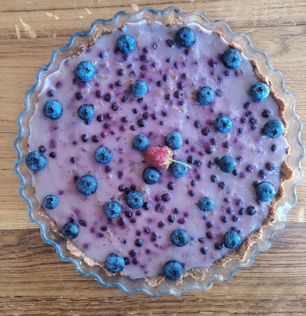 Zamijesiti tijesto, a zatim smjesu s prstima razvući po okruglom kalupu. Ako se koristi maslac bez laktoze tijesto bi, prije razvlačenja, trebalo odstajati u hladnjaku da se maslac stegne. Izbosti vilicom razvučeno tijesto i peći na 200 stupnjeva 15 do 20 minuta. U mlijeko zakuhati puding (po opisu na vrećici), dodati borovnice i kuhati nekoliko minua uz stalno miješanje. Smjesu staviti na podlogu i kada se ohladi ukrasiti. Ako se želi peći u većem kalupu ili se želi deblji fil, mjere se trebaju poduplati.
