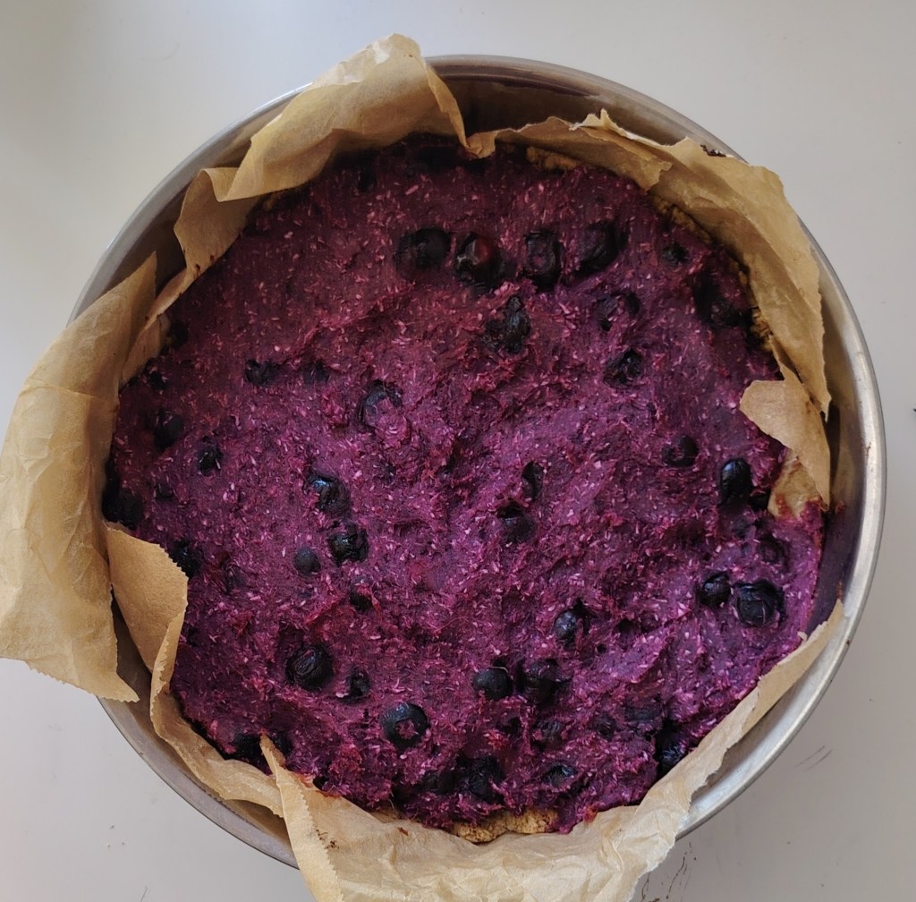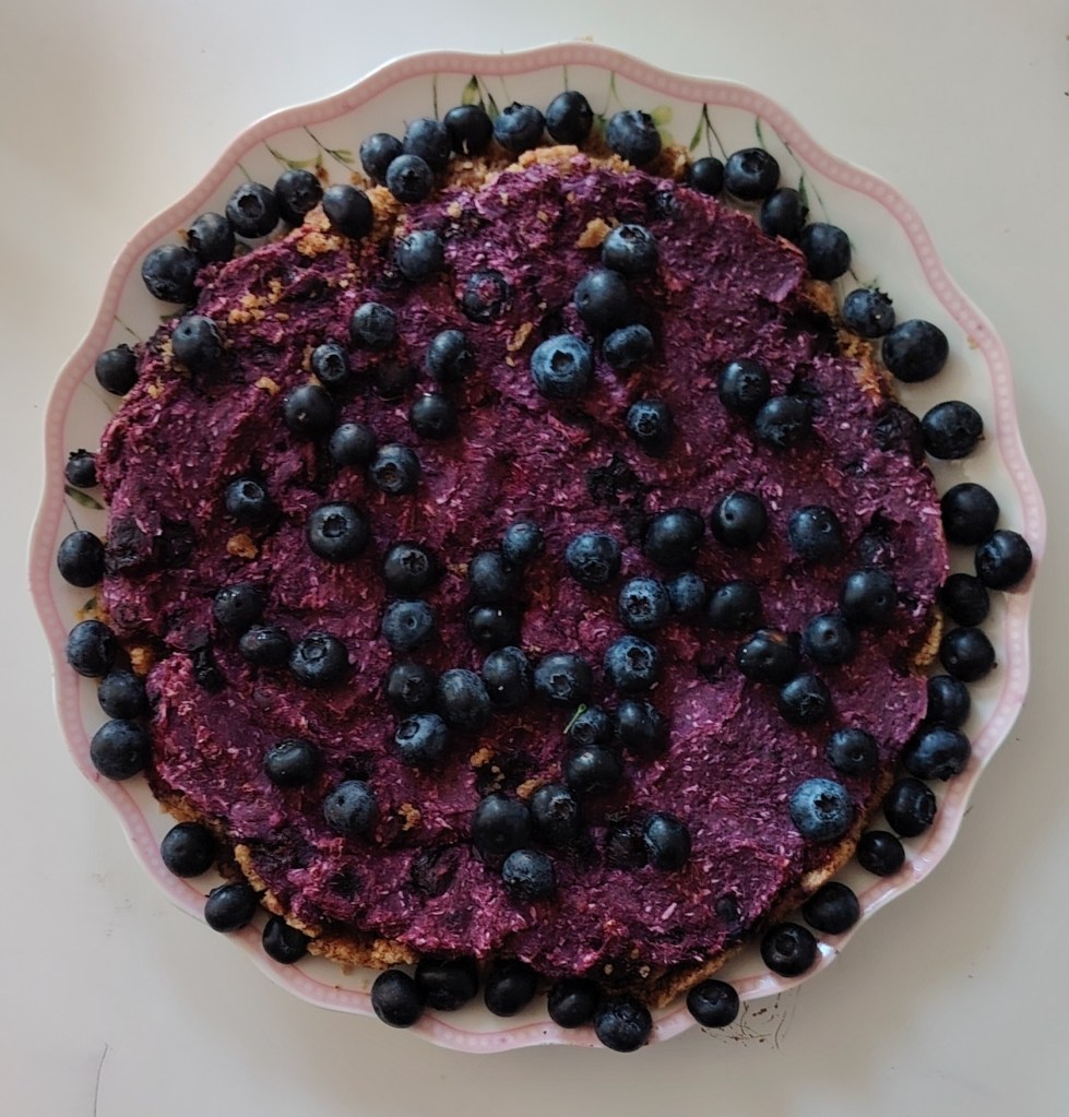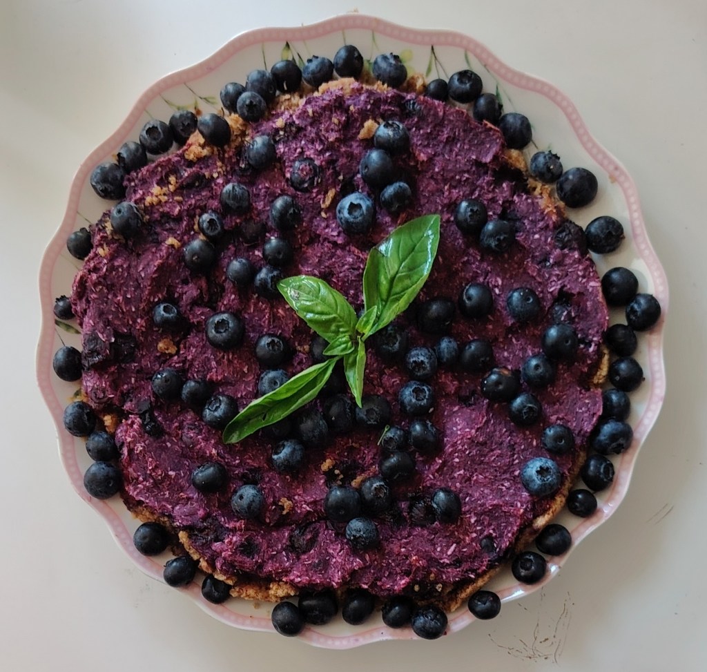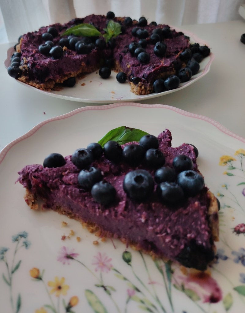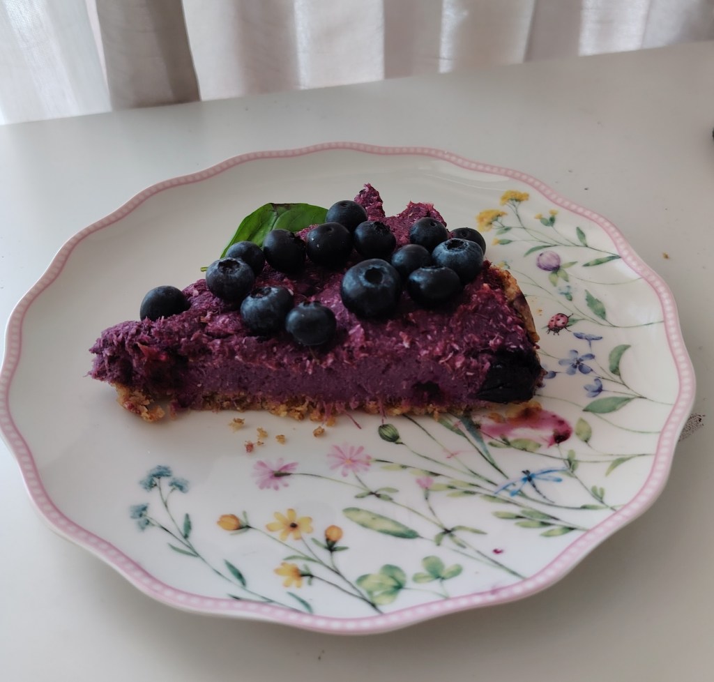 Od navedenih sastojaka umejesi se tijesto, zamota u prozirnu foliju i stavi u hladnjak na sat vremena. Nakon što odstoji tijesto se stavi u kalup za tart ili u okrugli pleh prekivenim papirom za pečenje. Tijesto se rukama razvuče po kalupu, izbode vilicom i stavi peći na 190 stupnjeva 15-ak minuta. Kada je pečeno punjenje se stavlja žlicom na pečenu podlogu. Punjenje se priprema na na sljedeći način: kuhani batat se izgnječi, doda maslac, sladilo i borovnice te se miješajući smjesa izjednači i žlicom razvuče po tijestu. Pleh se ponovo stavi u pećnicu na 15-ak minuta. Kada se ohladi ukrasi se s preostalim borovnicama.