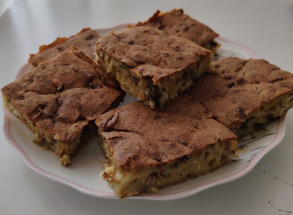 Prvo se dinsta meso s povrćem, a kada je gotovo ocijedi se višak tekućine (safta) i ostavi hladiti, Jaja se mute s malom žličicim soli i uljem, dodaje jogurt, mlijeko, brašno i griz. Smjesa je gustoće kao biskvit. U smjesu se doda ohlađeno meso, nasjeckane masline i dobro izmiješa. Smjesa se istrese u četvrtasti ili okrugli kalup i peče na 190 do 200 stupnjeva sat vremena.