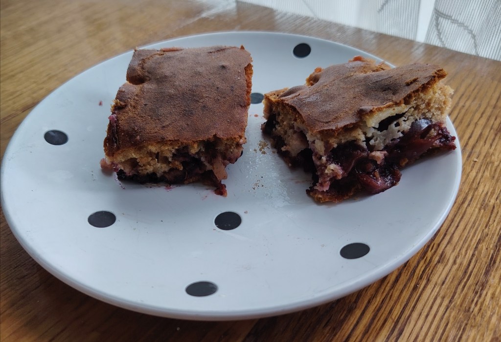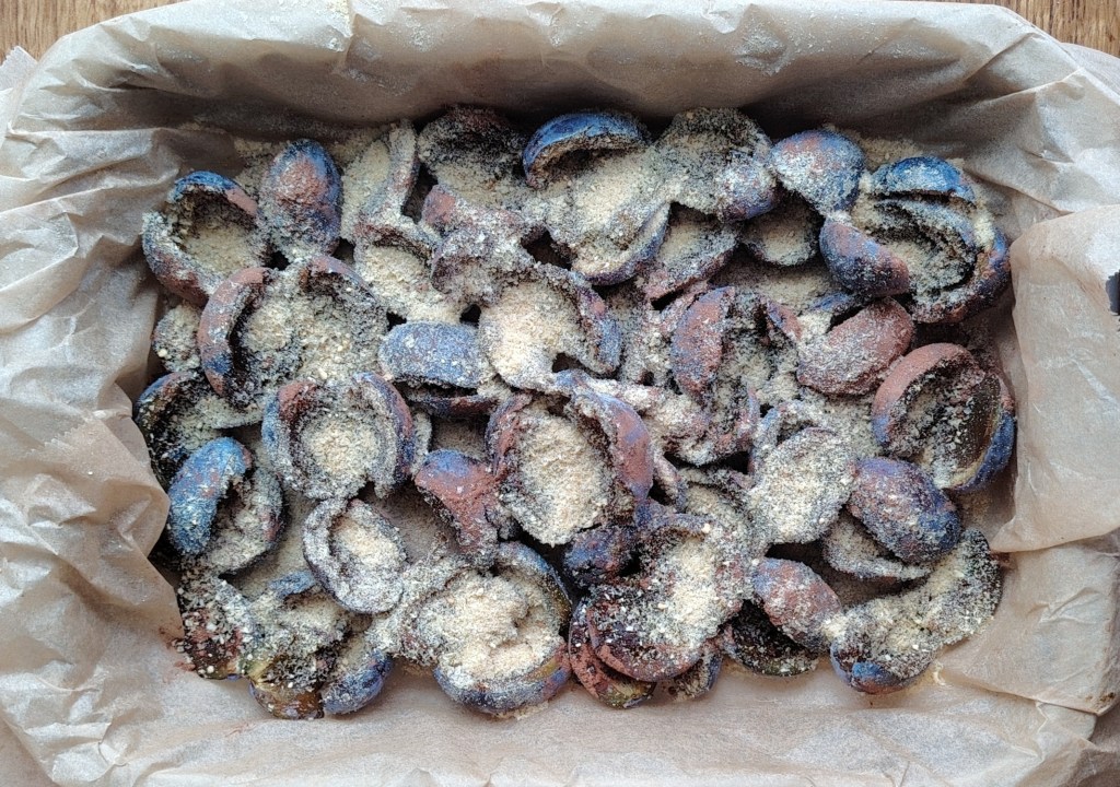 Otkoštiti šljive i slagati ih u pleh obložen papirom za pečenje (kožicom na papir). Posuti krušnim mrvicama i cimetom. Jaja, ulje jogurt, mlijeko te ostale sastojke miksati i preliti preko šljiva da budu prekrivene. Peći u pećnici na 190 stupnjeva oko 45 minuta.