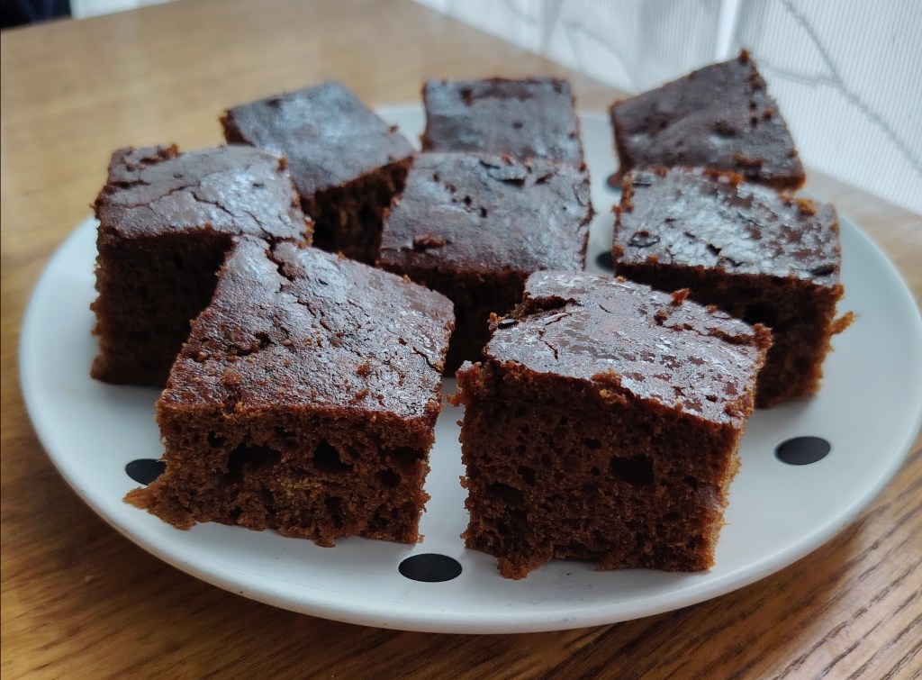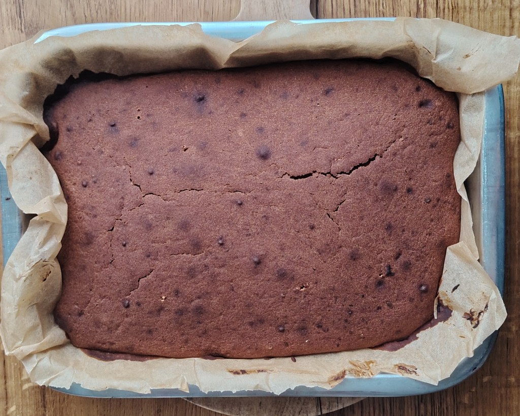 Umutiti mokre sastojke te dodati suhe. Izliti u pleh srednje veličine prekriven papirom za pečenje. Peći na 190 stupnjeva oko 45 minuta. Pečeni kolač dok je još vruć izbosti vilicom i premazati preostalim pekmezom. Rezati kada se ohladi.